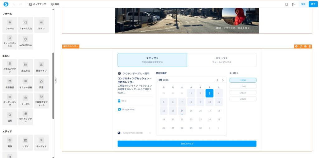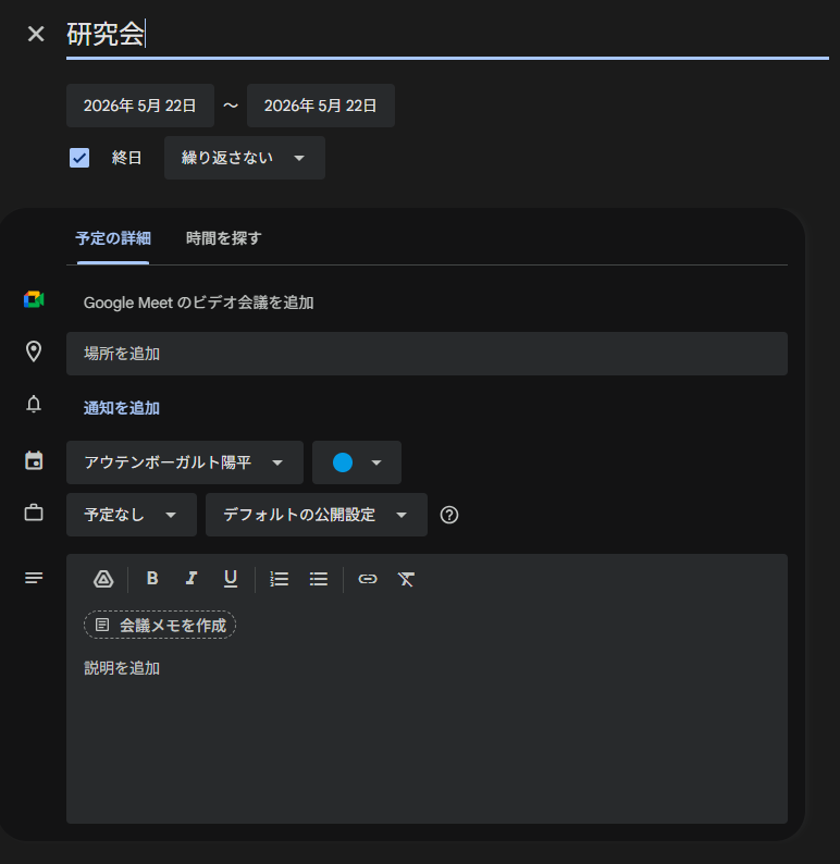 カレンダーイベントを作るときにGoogole Workspaceに接続する