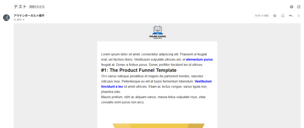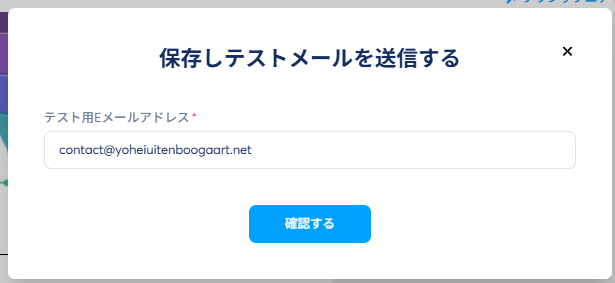 テスト用メールアドレスを確認して、「確認する」ボタンをクリックします。すると、テストメールがすぐに送信されますので、メールを見に行きましょう。