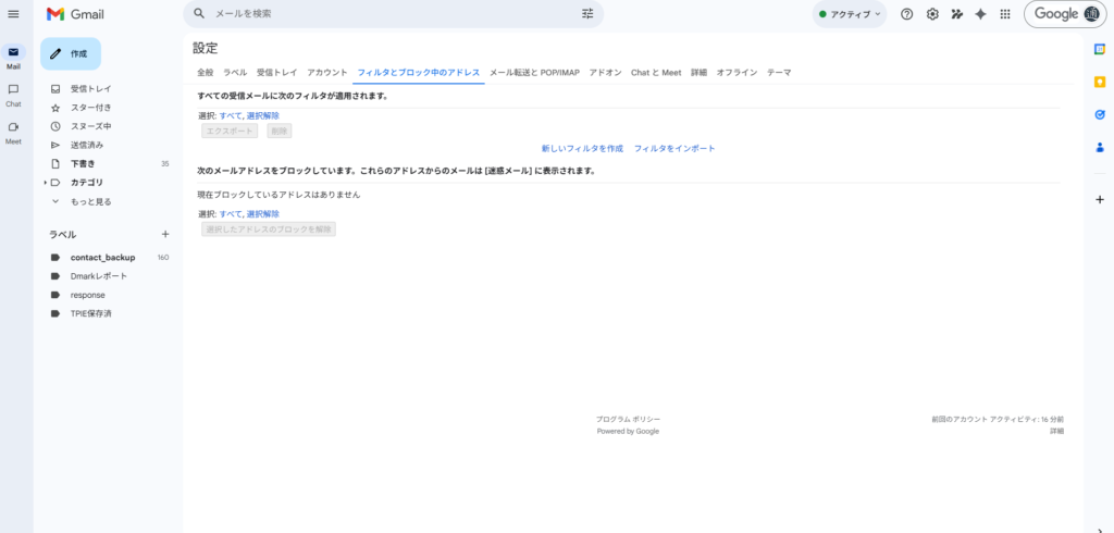 するとこのように、Gmailのラベルの欄に、さきほど作成したDmarcレポートというフォルダができて、受信トレイには入らず、すべてここに格納されていきます。